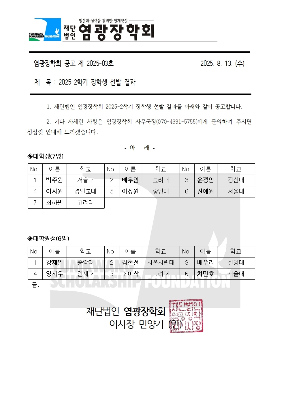2025-2Çбâ ÀåÇлý ¼±¹ß °á°ú